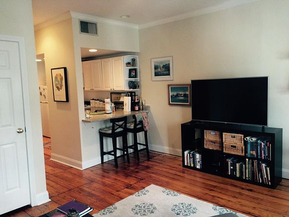 Bright and sunny one bedroom on desirable Appleton Street in South End. Large bedroom with A LOT of closet space and private deck. This apartment has recessed lighting, hardwood floors, and bow window in living room. Washer and dryer in unit and central A/C. Heat and hot water are included in rent. Some pets are okay with approval. First, last, and one month's fee are required.