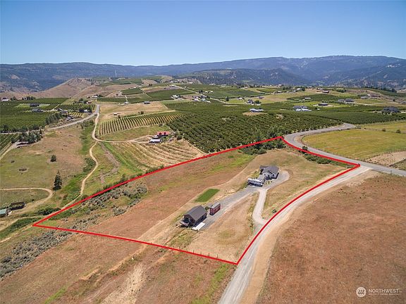 This stunning Wenatchee Heights acreage property boasts 3 bedroom / 2 bath 1390 sq ft primary home and 1 bedroom / 1 bath 768 sq ft detached ADU. Stunning 360-degree views and 5 peaceful acres on a dead-end street. Both primary home and ADU offer open-concept single-level living, high-end finishes including granite counters, stainless appliances, LVP wood floors and solid wood doors and trim. Large decks to enjoy the views from both homes and two large shed outbuildings. Detached ADU also offers storage under the house with lights and electrical. Property offers a fenced pasture for animals and plenty of room for a garden or to build your homestead.