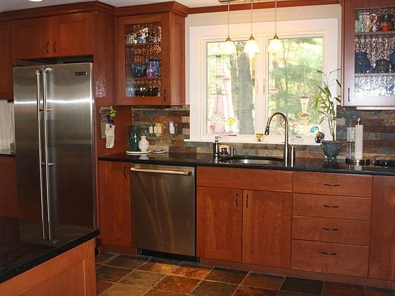 This home has been extensively transformed. You will love the style and amazing components. Renovated kit and baths. Open concept kit has custom crafted cherry cabinetry; soft-close drawers, custom slate floor, under cab lighting, SS appliances, lg L-shaped granite counter with overhang for stools .LR has gorgeous wall of stone with gas FP, HW fl, large window. DR with slider to lg deck. MBR has full bath, Toto toilet, marble tile, window. Main bath with marble counter, tub w/ subway tile and decorator trim. So many recent updates: windows, roof, furnace, Central Air, septic upgrated to 5 BR., add'l insulation, etc. Baths have heated floors! Tons of recessed lighting and ceiling fans. Lower level Fam rm has an 8 x 8 "bump out" with slider to rear grounds. Lower Level bonus rm with closets for games, etc. Scr porch, large deck, shed, 1 car gar. Many perennial plantings. Pavers lead to lovely bluestone and stone entry. Close to Conservation and Sudbury Swim and Tennis Club.