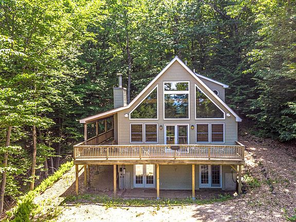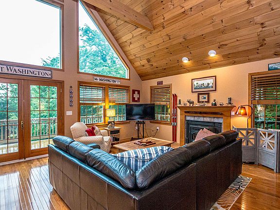 Priced to sell! This well-appointed contemporary chalet with seasonal Mount Washington views blends rustic charm with comfort. Boasting AC, pine-covered cathedral ceilings, and a wall of sunny windows, the living spaces are airy and bright. On the main level, you’ll find two bedrooms and a full bath. The custom kitchen, equipped with updated appliances and beautiful granite counters flows into the living room. The living room, anchored by a warm and efficient pellet stove, offers a comfortable space to relax and entertain. Upstairs, the primary suite is a cozy retreat featuring a jetted tub while the basement family room offers attractive built-in storage and ideal space for game nights. To enjoy a little fresh air, step onto the spacious deck, perfect for BBQ’s and stargazing. Just minutes to skiing, lakes, dining and more!