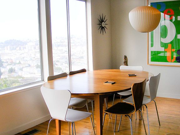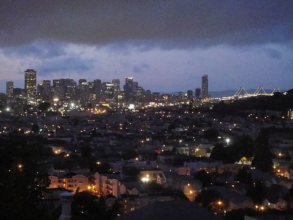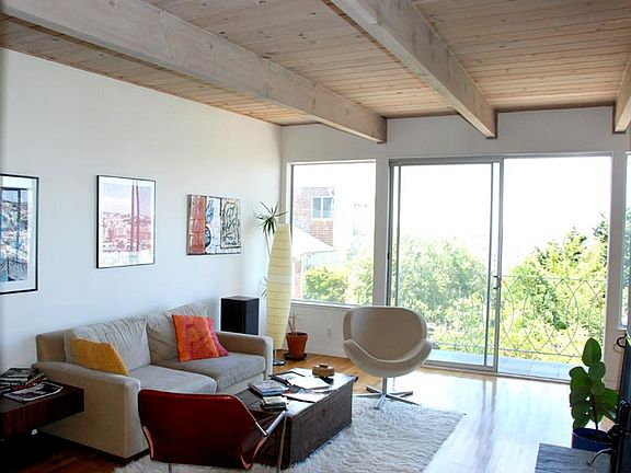 Modern, airy and light home with a spectacular panoramic view of the city. Located in a cul-de-sac on the one of the best blocks of Bernal Heights. Both Master bedroom and 2nd bedroom have French doors that open up to a split level deck with hot tub spa. Newly remodeled modern kitchen sports high-end appliances.