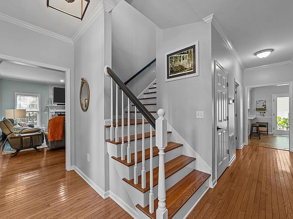Gorgeous front porchSeparate jetted garden tubOver half an acreCustom built in featuresUpgraded kitchenHardwood floorsQuartz countertops