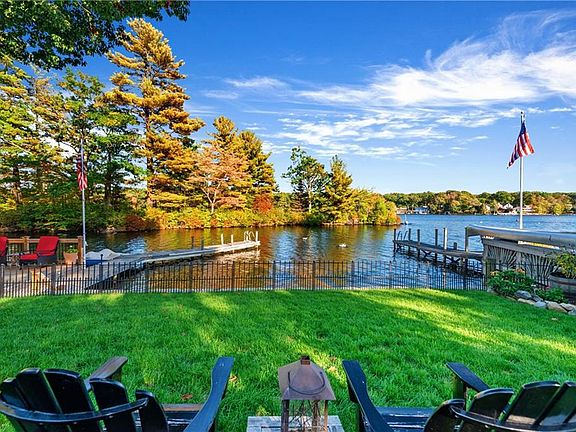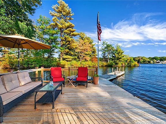 This beautiful 4 bedroom, 2 bath Waterfront Colonial is filled with classic lake home charm and tasteful updates. It boasts a brand new kitchen with Starmark Cabinetry, granite counters, stainless appliances and durable luxury plank vinyl flooring in an open concept living area on the 1st floor. Relax on the 2nd floor with breathtaking lake views, beautiful bamboo hardwood flooring and a 2nd family room with vaulted ceiling and open beams. With generous living space and stylish finishes, you'll enjoy a perfect setting for relaxing and entertaining. Completely turnkey: new roof, stone retaining wall at the water, deck and dock ready to go, perfect low boat traffic area for enjoyable swimming and wading. The perfect place to call home year round or maybe a great summer home to boat, jet ski, wake board, swim, fish and entertain on the beautiful waters of the lake! With nearly 300 acres, this private body of water is a full recreation and relaxation destination.