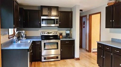 This lovely property is located in one Gardner's best area of homes, boasting a Charming Colonial with farmers porch, fireplaced living room, gleaming hardwood floors, open concept kitchen with updated cabinets andHickory flooring, stainless steel appliances, dining room with mullion windows, 3 bedrooms and 1.5 baths, a finished basement that would make a great family room, play room or a bedroom, what ever works best for your needs- Large and sunny deck with a beautiful tree lined back drop. If your looking for a great place to call home, look no further, call today for your private showing!