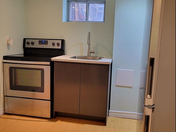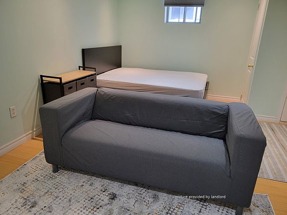 This bright, recently-renovated basement bachelor apartment -- suitable for a single person -- is fully furnished with new furniture (and mattress) and exceptional full-sized appliances -- including washer and dryer (and laundry tub).Located in a quiet neighborhood just moments away from Eglinton Ave West and Marlee Avenue. The Eglinton West subway station is about a 5-minute walk from Belgravia Avenue.Bell Fibe internet and central air conditioning are included at no additional charge ! Lots of storage space too !Available immediately for a one-year lease, with renewals available. Please note this is a no-smoking, no pets residence.