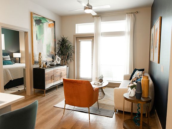 - Exterior features: Active Adult Lifestyle Programming, Business Center, ButterflyMX building access system, Climate-controlled hallways, Four elevators, On-site community market, Open-concept floor plans, Package Receiving, Pet Park, Soaring 9-foot ceilings, Spa-inspired bathrooms, TV Lounge, Walk-in showers*, Whirlpool Stainless Steel Appliances