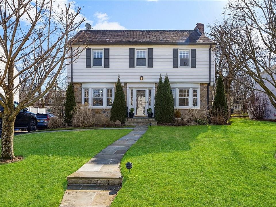 Steeped in history, this charming Wykagyl center hall Colonial, built in the 1940s, features 3 bedrooms, 2.2 baths, and a vaulted family room with French doors leading to a patio, fire pit, and a spacious flat backyard. Enjoy modern living with updated kitchen and baths. The living room, adorned with a fireplace and built-ins, adds a cozy and functional touch to this inviting home. The lower level adds versatility with a playroom, laundry, and gym. Ideal for those seeking a blend of classic design and contemporary amenities. Additional Information: Amenities:Storage,HeatingFuel:Oil Above Ground,ParkingFeatures:2 Car Attached,