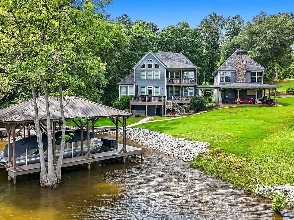 OH WOW!! "THE CHANCE SELLS TEAM" presents to you this beautiful and immaculate 4 bedroom 3.5 bath elegant Craftsman style home, with one original owner!! This is a "DEEDED" lot! This home has almost 3,000sf heated and cooled, including the additional In-Law-Suite. This home sits on 310 feet of water frontage on the lake! ****(ALL FURNITURE AND DECORATIONS ARE TO REMAIN WITH THE HOUSE, AT NO COST TO THE BUYER!)**** and This spectacular home is sitting on Lake Jackson (NORTH ALCOVY), and has been fully remodeled in the last 6 months. What an incredibly spacious and gorgeous primary en-suite with an upgraded trim package, boasting an incredible primary bathroom with 2 walk-in-closets, separate tiled shower, dual vanities, soaker jetted tub and eye catching upgraded tile flooring! The primary suite has a door leading out to the covered upper balcony, with long distant views overlooking the lake. The newly remodeled kitchen, with a level 8 Quartz countertops, shaker style cabinets, wrap around bar hosting 5 bar stools easily, marble backsplash, upper and under cabinet lighting, pot-filler (with under cabinet hidden plug-in outlets too.) Beautiful refinished red oak hardwood floors throughout the main floor with frieze carpet in the bedrooms. The home has a wonderful open floor plan with the kitchen opening up to the large great room with soaring ceilings and the cherry inlaid coffered ceilings. Fireplace with marble backsplash too. Windows galore throughout this home, (5 of them brand new and replaced in the last 2 months) constantly giving you views of the lake and the surrounding outdoor areas from almost every room. This warm and tastefully decorated home does not disappoint!! You will feel the coziness right as you walk through the front door. The large dining room area can accommodate an 8+ person table, if you desire. The office/sunroom, can also double as a flex room. 2 nice sized bedrooms on the main level with a fully remodeled bathroom with new level 8 quartz countertops, new sink, new bathtub/shower with tiled back splash, glass door, and a new toilet. The half bath has been remodeled with new level 8 granite, new sink and a new toilet. The In-Law-Suite above the oversized garage consists of a large great room, bedroom (with a King size bed.), full bath and wet bar with sink/cabinet/mini fridge area. This home has been freshly painted inside and outside. Two brand new HVAC systems, air handlers. new duct work ran throughout, brand new 30 year architectural roof, all new deck with new deck rails and Trex composite deck boards. I love the covered outdoor fireplace/entertaining area that overlooks the backyard and lake. This area is equipped with a 65 inch TV and sound bar, sofa, chairs, loungers, stained & stamped concrete floor, stained tongue and groove ceilings with ceiling fans and recessed lighting. It's easy keeping your boat clean with the covered boat slip, which has a new upgraded 6,000 lb motor and lifting system. Nice dock, that was recently painted and originally built around a big tree to preserve the tree. A jet ski landing area beside the dock, that will accommodate a jet ski drive on ramp for 2 jet skis. Nice 8-9 feet tall, walk-In crawl space with tons of room for storage/landscape equipment, mower and a golf cart, etc. At night this property is very well lit up, with an extensive lighting package everywhere throughout the property. The landscaping is beautiful too!! A HOT TUB and so much more that I can't possibly list everything here, as you will need to come see it yourself in person!! This one will not disappoint!! Nice quiet cove with wildlife galore.... including frogs that croak, cicadas that sing, a bird sanctuary, abundant daily nature/wildlife, Doves, Woodpeckers, Cardinals, Hummingbirds, Owls, Osprey, (rare sighting), Blue Herons, Mallards, River Otter, etc. Surrounded by the best neighbors ever!! Give us a call today to view this AMAZING place today!! Thanks, Chance.