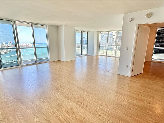 Step into luxury living at this 3-bed, 2-bath condo in downtown Miami's iconic 50 Biscayne. With wood floors, floor-to-ceiling windows, and direct water views, this corner unit offers the best of city living. The master suite features double sinks, a shower, a separate tub, and two walk-in closets, with access to a spacious balcony. Entertaining guests is effortless in the generously sized living area that seamlessly flows onto the nearly 400 sqft wrap-around balcony overlooking the bay, creating an idyllic setting for gatherings, or simply unwinding after a long day. Residents also benefit from top-tier amenities including a spa, pool, gym, and 24/7 concierge. With a prime location near dining, shopping, and entertainment, this condo offers a stylish urban lifestyle in the heart of Miami