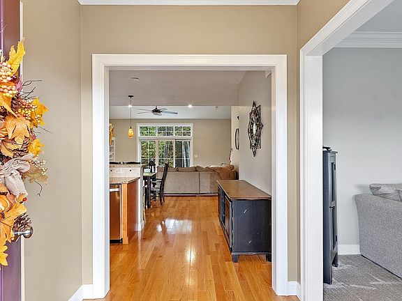 Welcome to Ridgewood Estates! Set beautifully on the lot with westerly views, the moment you step onto the charming stone front porch and enter the spacious foyer you’ll be captivated by this home’s blend of comfort and practicality. The open-concept layout is perfect for entertaining, with a gourmet kitchen boasting stainless steel appliances, granite countertops, and a center island that flows effortlessly into the vaulted great room. Here, you’ll find a cozy gas fireplace, built-in bookshelves, and triple sliders that flood the room with natural light. A versatile front room offers the flexibility of a private office or a lovely sitting room. The first-floor master suite is a serene retreat with a double vanity, walk-in shower, and a generous walk-in closet. Upstairs, you’ll find three more spacious bedrooms and a full bath. With energy-efficient upgrades like solar panels, a whole-house generator, upgraded HVAC, a water softener, a Reeds Ferry shed, and a fire pit. Your dream home!