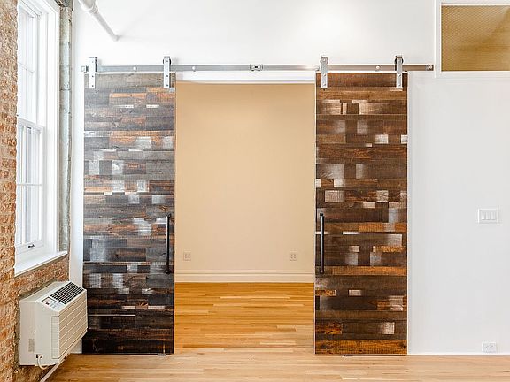 This expansive 1155 sq ft loft faces west with unobstructed views of the NYC skyline and East River thru three oversized new double-hung double pane windows in perfect portion to the 11ft high ceilings. There are genuine white oak hard wood floors throughout and custom reclaimed wood barn doors on the bedroom. In addition to all new mechanical and electric throughout, the loft has been wired to accommodate a projector and screen.