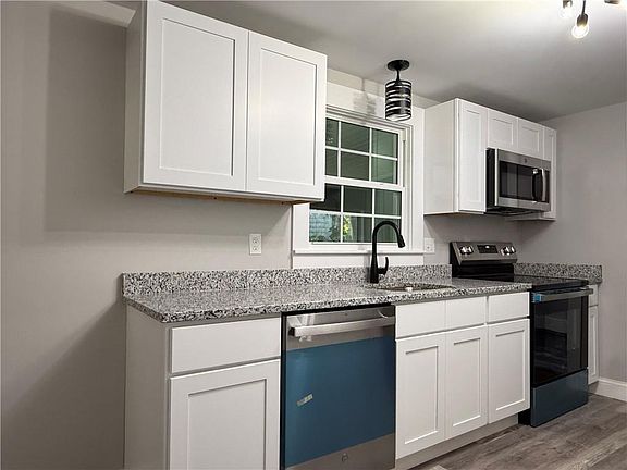 Highest and Best by 5PM Monday June 9, 2025. Located in the desirable Eden Park neighborhood of Cranston, Beautifully renovated two bedroom cape with a brand new kitchen with shaker cabinets, granite countertops and stainless steel appliances. Bonus room between kitchen and garage. Refinished hardwood floors in the living room, hallway and bedrooms. New vinyl flooring in kitchen and bathroom. Freshly painted modern grey color throughout the home. Remodeled bathroom with new tub, vanity and toilet. Upgrades include a new roof and 200 amp circuit breaker panel . Home has an attached garage. Walk up attic and open basement with high ceilings for possible extra living space. Good size enclosed back porch to enjoy nice summer nights.