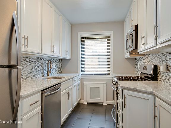 Oversized Renovated Jr 4 With Dr Converted To 10' X 11' 2nd Bd Closed Off W/ French Doors. Apt Features Tastefully Remodeled Kitchen Featuring Custom Cabinets/Marble Counter/Glass Tile Backsplash & S/S Appl Plus Renovated Full Bath. Closets All Redone To Maximize Storage Incl Bd Wic. Relax On Private Terrace Facing Courtyard. Prime Location Blocks From Train/Bus/Shops.