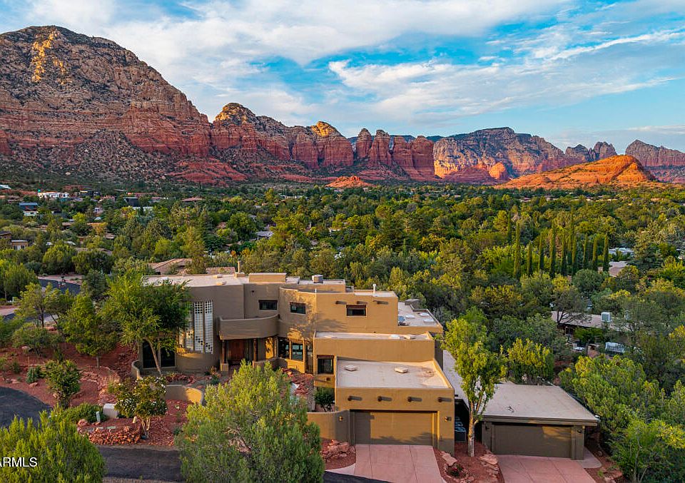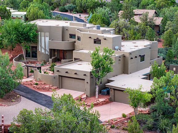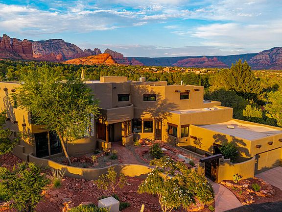 Exclusive property in Sedona's premier subdivision, Thunder Mountain Ranch. Red Rock views from the perfect kitchen for a home chef that enjoys hosting large groups. Red Rock views from the Living room, den, primary bedroom on the main level, & the Primary bedroom on upper level. Red Rock views from both balconies, the home gym, the guest bedroom, and from the pool, spa & back patio. Home is three levels with an elevator. Classic Sedona touches w/ exposed Southwest Beams(vigas) Saltillo tile, Kiva fireplaces, a new roof under warranty & all the right modern upgrades from new toilets, new HVAC, new Primary bathroom suite, new light fixtures, new pool equipment, & new paint inside & out. Unbelievable storage throughout this home. Don't forget the four car garage! Multiple trailheads are less than a mile away, in addition to shopping, grocery, restaurants, theaters and more.