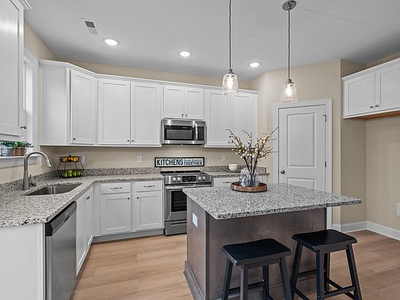 Custom Built w/Rocking Chair Front Porch! 1st Floor Flex Room! LVP Flooring & Blinds Throughout Main Living! Kitchen: Granite Ctops, Custom White Cabinets w/Crown Trim & Soft Close, SS Appls Incl Smooth Top Range, Blt-in MW & Refrigerator, Center Island w/Breakfast Bar & Barstool Seating, Acccent Pendants Lights, Corner Walk in Pantry & French Door to Rear Patio! Primary Suite: w/Plush Carpet & Decorative Ceiling Fan! Primary Bath w/Painted Dual Vanity, Walk in Shower w/Corner Seat & Spacious Walk in Closet w/Built ins! Open Concept Family Room for Entertaining! Oversized Bonus/Recreational Room! 2-Car Garage!