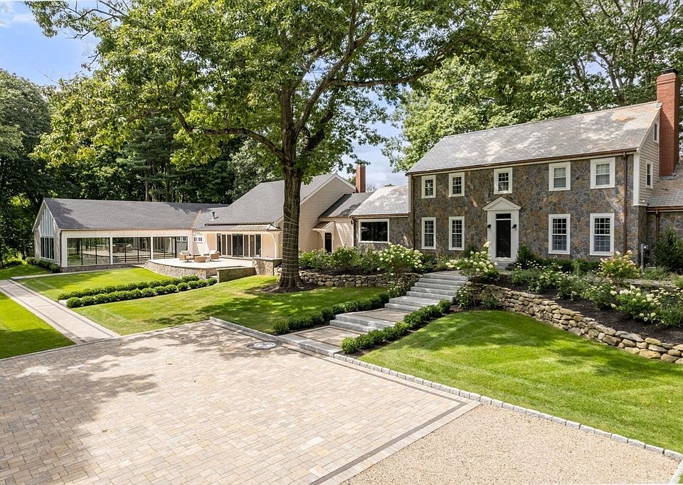 OFFER ACCEPTED. OPEN HOUSES CANCELLED. Don’t miss the opportunity to own unparalleled space and privacy at an incredible value at 50 Brush Hill Lane. Set on a private 1.82-acre lot, this estate blends timeless elegance with modern design, featuring cedar shingles, stone accents, and a sweeping driveway. Reimagined by renowned architectural firm Goody & Clancy, the mid-century modern addition complements the original 1940s colonial. With over 8,000 sq feet of living space, the layout offers flexibility for privacy, guests, and even multi-generational needs. Highlights include a newly renovated chef’s kitchen, full catering kitchen, laundry zones on two levels, a historic library, dual offices, home gym and a spacious great room that opens to a travertine patio with sprawling views. The show stopping indoor Sport Court adds unmatched recreational and entertaining space. With its expansive footprint and exceptional amenities, this home offers extraordinary value in today's market!