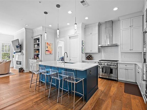 Experience LUXURY ONE LEVEL LIVING in the heart of downtown Alpharetta!! Enjoy walking to shops, restaurants, farmers market and year round events. As you enter this beautiful Unit you will find an open concept with a tons of natural sunlight. The chefs kitchen boast of quartz countertops and high end appliances such as a Wolf gas range and Sub-Zero refrigerator. Off the kitchen you will find an oversize walk in pantry. The open-concept living and dining area flows seamlessly to a private balcony complete with a built in grill, cozy fireplace and an electric screen you can let down to block sun, have privacy, while also making it enjoyable all year round. Perfect for relaxing. The beautiful primary bedroom also walks out to the private balcony. You will find beautiful hardwoods throughout the unit. The primary has its own spa like bath and large walk in California type closet. The secondary bedroom is equipped with its own private bath for privacy. This Unit is perfectly located on the second level which opens up to the beautiful park and amenities. The park includes a relaxing fountain, beautiful pavilion with fireplace, tv, and outdoor kitchen, perfect for hosting get togethers. The park also includes a green egg, bocci ball court, fire pit, herb garden, and dog park. Teasley place also has a fully equipped gym, and a gated, secure, parking garage with 2 designated parking spaces. This unit parking spots come with an EV charger, and your own climate control storage unit. Teasley Place is a one of a kind in Alpharetta and you will love this resort style living. The HOA includes Premium tv package with all channels, 50 Hours of cloud DVR storage, high speed internet, trash, and concierge.