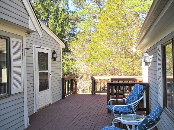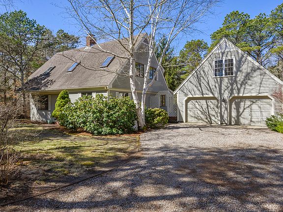 This house nestled within Great Woods provides options and has neat features like easy access to the bike trail and the National Seashore. Take the winding footpath from your backyard to the bike trail or go further and end up at the bluff overlooking the ocean. The spacious living room has soaring ceilings, radiant heat in the flooring and a wood burning fireplace. It opens into the large eat in kitchen and also out onto the sizeable backyard deck. Skylights enhance the natural light in this room and throughout the house opening the space up even more. You will find three bedrooms, including one on the first floor, two full baths and a finished basement in the main house. Bring your creativity for how to use the large finished room in the basement which also has a half bath. The fourth bedroom and third full bath are above the detached two car garage with their own entrance. There is plenty of room to spread out inside and out. Enjoy the central A/C, central vac, outdoor shower and large deck area.