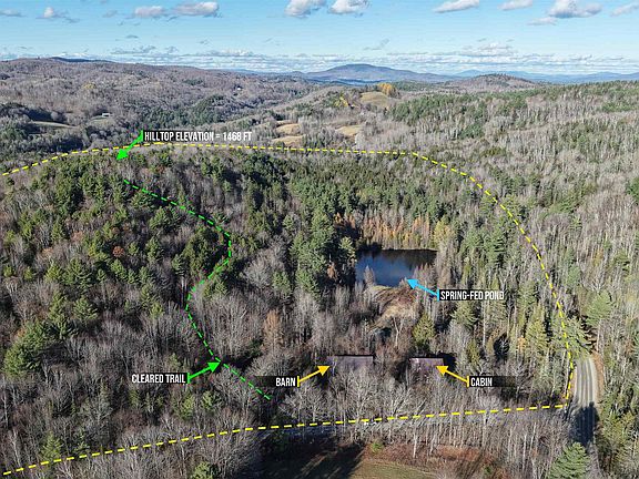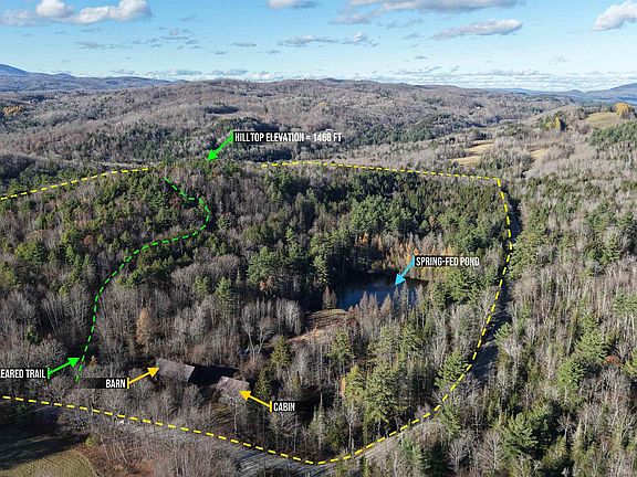 Vermont Land for Sale near Northeast Slopes! This classic Vermont estate captures all the iconic features of a New England landscape, with an antique cabin, barn, one-acre spring-fed pond, and even it’s own little mountain with a cleared hiking trail! It’s like living inside your very own national park. -Spring-fed Pond -No Restrictions! -On-Site Power & Water Well -Old Cabin & Barn -Massive Amount of Antique New England Barnwood -Your Own Little Mountain -Cleared Trail to Top -Public Road Frontage Welcome to one of the most enchanting properties in all of Vermont-49 acres of pure, iconic New England beauty, where rolling meadows, whispering pines, historic barnwood, and a spring-fed pond come together to create a setting so timeless and serene. This is more than land… it’s a full-blown Vermont experience. At the heart of the property sits an antique cabin and a massive barn, both brimming with original New England character. They stand ready to be restored, reimagined into a homesite compound, or lovingly dismantled for a treasure trove of authentic Vermont barnwood-a rare material worth its weight in gold for builders and designers. In the backyard, a one-acre spring-fed pond mirrors the surrounding mountains and sky, offering a magical place to fish, skate in winter, or simply breathe in the peaceful stillness. And on the west side of the pond lies one of the property’s greatest surprises-your own little mountain, complete with a cleared hiking trail leading to the summit.