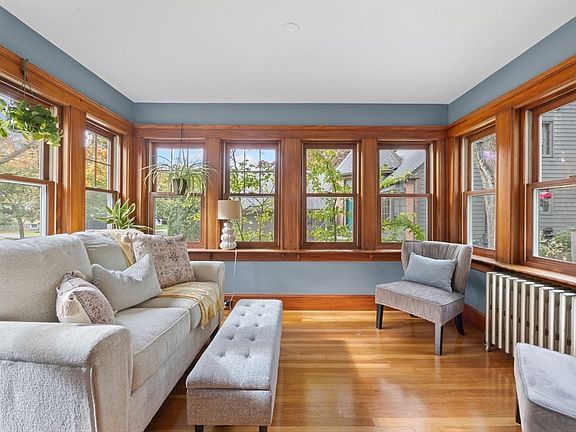 Classic Dutch Gambrel Colonial sits in a lovely neighborhood on a one way street, and with super easy access to Route 1, schools, bus and shopping. There is a wonderful blend of old charm and modern updates here: beautifully preserved woodwork, fireplaced living rm, hardwood flooring, and bright modern kitchen w/ 1/2 wall that opens into the sundrenched dining area. Curl up with a book in the cozy sunroom! Porch off kitchen is 4 season, extending your living space - an ideal spot for a playroom, den, mudroom or combination thereof. There is a finished room (unhtd) in the basement, ideal for a den, more play space or an at-home office or gym. The walk up attic makes storage super easy! Love the flat fenced back yard - a great space for cookouts and family get togethers. Oversized garage, irrigation system. Stainless kitchen appliances and washer/dryer will all be left as gifts to the buyer.