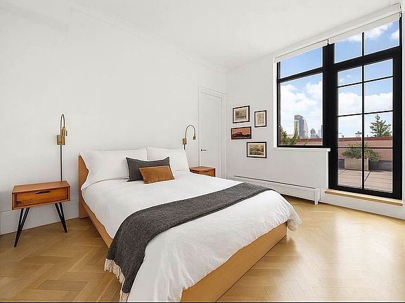 Floor-to-ceiling windowsSeparate terraceSweeping viewsSoaring ceilingsFive-fixture en-suite bathGenerous center islandSpectacular roof deck