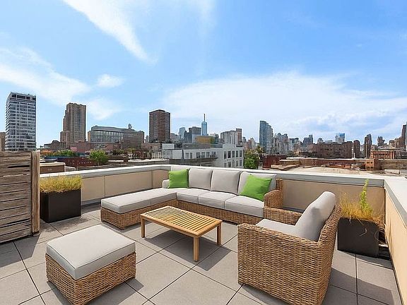 Perched high above the city, this incredible two-bedroom, two-bath duplex penthouse boasts soaring ceilings, two distinct private outdoor spaces - a spectacular roof deck and a separate terrace - and sweeping views that frame the Empire State Building and One World Trade in their full glory.