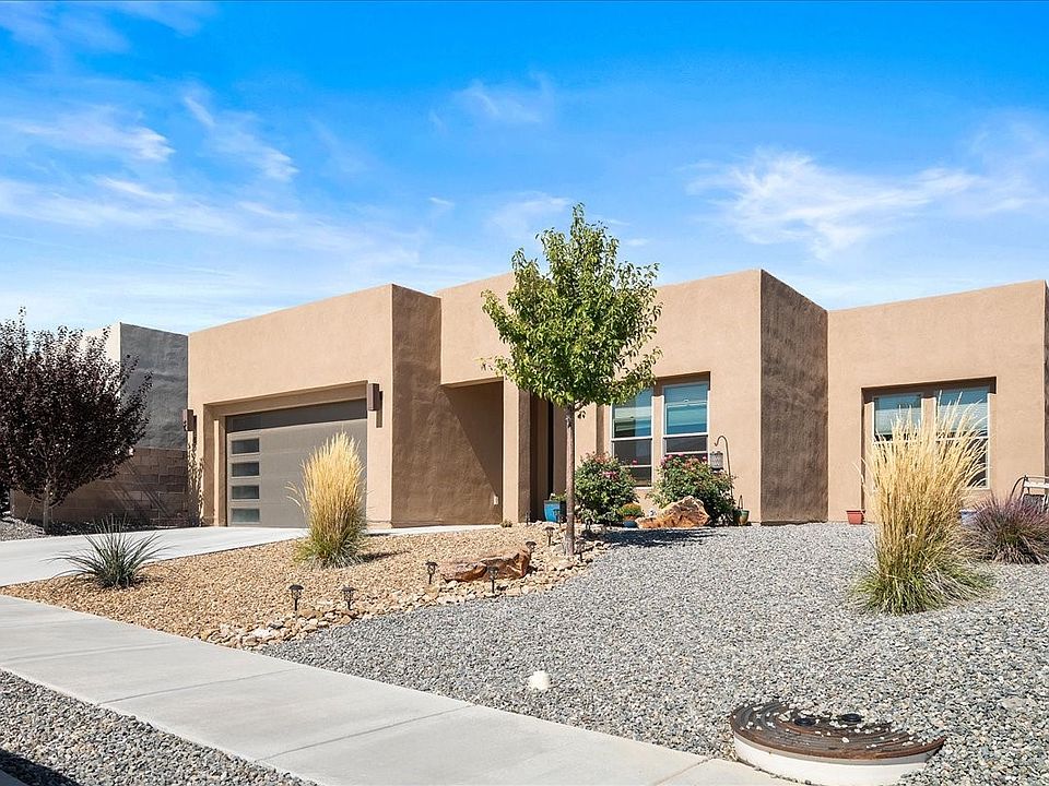 Welcome to this bright and beautiful home, just minutes from LANL. Built in 2021 and move-in ready, it features $35,000 in thoughtful builder upgrades, modern finishes, and a functional layout perfect for today’s lifestyle. The open-concept design is filled with natural light and includes a stylish kitchen with granite countertops, stainless steel appliances, 42-inch cabinetry, decorative backsplash, pantry, and a large island. The dining and living areas flow seamlessly together, anchored by a cozy gas fireplace. The primary suite offers a spacious retreat with dual vanities, a walk-in shower, a tub, and a large walk-in closet. Additional bedrooms and a dedicated office with French doors provide flexibility for guests, work, or hobbies. Enjoy outdoor living in the fenced backyard, complete with a covered patio, and low-maintenance landscaping with automatic sprinkler system. Garage storage system conveys with property. With a transferable builder warranty and a location close to schools, parks, shopping, and dining, this home is ready for you to move right in. Schedule your showing today!