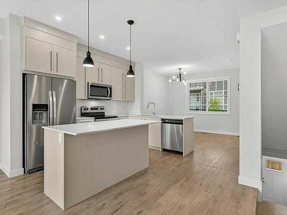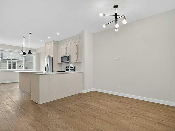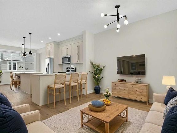 Welcome to this spacious 3-bedroom home perfectly situated in the vibrant community of Cornerstone. Enjoy easy access to Stoney Trail, neighbourhood playgrounds, scenic walking paths, and a variety of nearby shops and amenities. Step inside to a bright, open-concept design featuring 9-foot ceilings and elegant vinyl plank flooring throughout the main level. The showpiece chef’s kitchen is equipped with full-height soft-close cabinetry, quartz countertops, a stylish eating bar, and a full stainless steel appliance package—ideal for entertaining or everyday family living. The kitchen flows seamlessly into the dining area and spacious great room, creating a warm and inviting atmosphere. Upstairs, the primary suite offers a private retreat with a 4-piece ensuite and generous walk-in closet. Two additional bedrooms, a full bathroom, and a convenient upper-level laundry room complete the second floor. The double tandem garage provides plenty of space for vehicles, storage, or even a home gym or workshop. Bright, modern, and move-in ready, this TRUMAN-built residence combines style and functionality—ready for you to make it your own.
