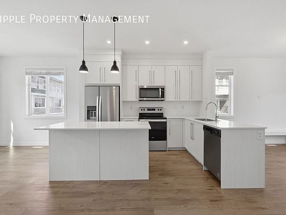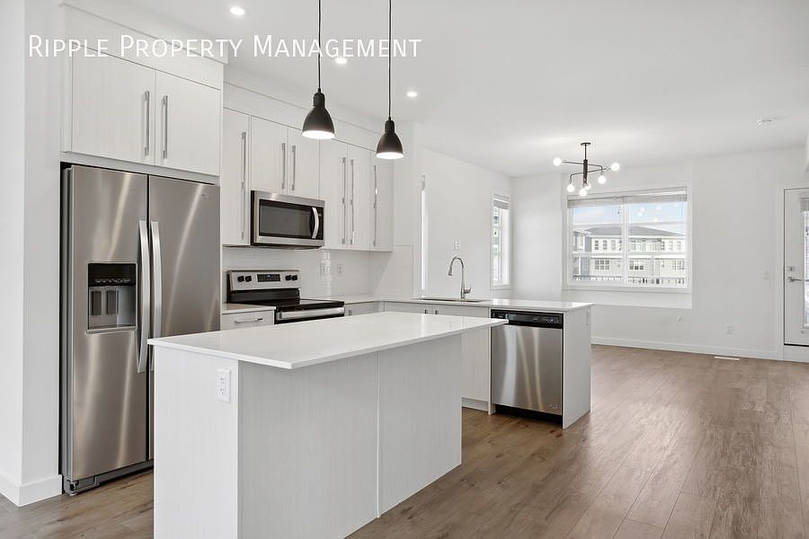 FANTASTIC MODERN 4 BEDS/ 2.5 BATHS TOWNHOUSE CORNER UNIT Interested in this unit? Our automated booking system called ShowMojo will contact you within a few hours with possible showing times and dates. INFORMATION: - Utilities Included: No Utilities Included - Utilities NOT Included: Electricity, Cable, Internet, Heat, & Water - Parking: Attached Double Garage - Pets: No Pets Allowed - Smoking: Non-Smoking - Storage Included: No UNIT FEATURES: - Large living room with large windows and high ceilings features cabinets for extra storage - Living room provides access to the balcony - Open concept kitchen with an island and double sinks - Kitchen offers plenty of cabinet space and stainless steel appliances - Main bedroom with large windows with a walk in closet and an attached full bathroom - Second and third bedroom have large windows with shelves for extra storage and an attached half bathroom - Fourth bedroom has large windows and shelves for extra storage by the front entry - In suite laundry - Hardwood, carpet & laminate flooring COMMUNNITY FEATURES: - Nearby shops, restaurants and more! - Located near parks, paths and ponds - Close drive to Stoney Trail - Nearby the Calgary International Airport This property is professionally managed by Ripple Property Management (Powered by RE/MAX Commercial Properties)