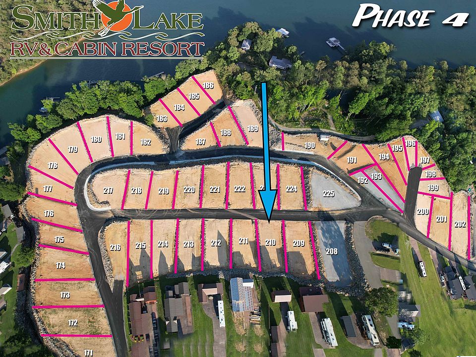 Welcome to the Premier RV Resort on Smith Lake! Experience luxury RV living at its finest in this beautiful lakeside gated resort featuring three scenic ponds, a pickle ball court, a sparkling pool, private access to Smith Lake, and so much more. This is a new lot in Phase 4 of the resort. Close to the pool, club house, boat ramp, boat docks, and more. These lots are ready for your RV and your home. Outside, enjoy a large stamped concrete RV pad, a covered patio ideal for entertaining and BBQs, and direct private access to Smith Lake. Additional resort amenities include trailer storage, beautifully maintained grounds, and a welcoming community atmosphere. Whether you're relaxing by the water or enjoying a game of pickle ball, this is truly the ultimate RV resort experience on Smith Lake.