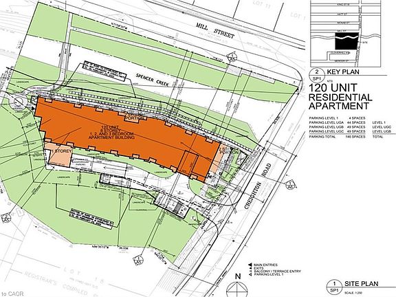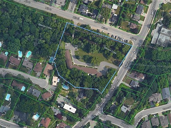 PRIME DEVELOPMENT OPPORTUNITY: This 2.39-acre waterfront property on Spencer Creek in downtown Dundas is currently being rezoned (‘Medium Density Multiple Dwelling–RM3 Modified’) for an 8-storey, 120-unit condominium development. The zoning will also allow for a retirement facility and there is still a massive upside potential with a maximum build allowance up to 12 storeys and 170 units. A full application has been submitted including the following studies: Hydrogeological; Geotechnical; Functional Servicing & Stormwater Management; Noise Impact; Sun/Shadow; Wind; Parking Analysis & Transportation Management. This luxury apartment style building will comprise of one, two, and three-bedroom configurations. The building is designed with recessed balconies enhancing its visual appeal. To accommodate residents, the development includes a total of 144 parking spaces in an underground garage along with 120 storage lockers and dedicated bicycle parking. However, a revised zoning by-law will allow for a reduction to a total of 78 spaces significantly reducing the underground requirements. A rooftop amenity space is also included in the plan. Access to the site is from the west side of Creighton Road, ensuring efficient circulation for both residents and visitors. The site is currently occupied by a single-storey building containing 10 rental units with plenty of interim opportunity. Located directly in front of Spencer Creek Trail connecting to the entire Dundas Valley Conservation with easy access to Webster Falls and the Dundas Valley Golf and Curling Club. This site is conveniently located on a bus route and just steps to the historic downtown Dundas with a vibrant mix of restaurants, shopping and amenities. This development represents a strategic use of land in alignment with the City of Hamilton’s Urban Official Plan and Design Guidelines. It notably advances the core objectives of intensification while considering the form and functional characteristics of the area.