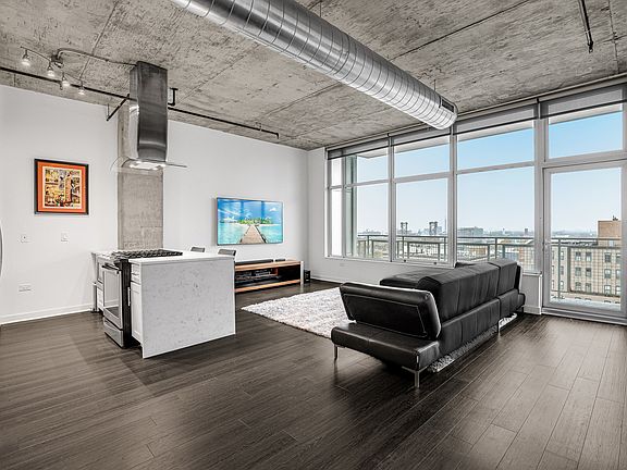 Experience modern living in this stunning industrial loft at The Guild in Chicago's South Loop, offering sweeping skyline views and an urban oasis above the city. The sleek kitchen is ideal for entertaining, with quartz countertops featuring an infinite edge, stainless steel appliances, and a stylish range hood with suspended lighting from the 10-foot ceilings. Custom Plexiglass partitions separate the living area and bedroom, providing a soundproof retreat for ultimate relaxation. The spacious bedroom includes a walk-in closet and an en suite bathroom with ample storage in the quartz topped vanity. The bathroom is complete with a soaking tub, large textured tiles, plus an additional entrance from the hallway for added convenience. Floor-to-ceiling architectural tempered glass along the western wall minimizes noise, creating a peaceful ambiance. When it's time to enjoy the outdoors, the west facing 17-foot private balcony offers the perfect setting for sunsets and memorable gatherings. This 14-story high-rise offers an impressive array of amenities, including a well-equipped fitness center, resident lounge, door staff, bike storage, package receiving room, on-site manager and engineer, and convenient on-site parking. The Guild is a pet-friendly building with easy access to multiple near by dog parks, perfect for your four-legged friends. Residents will also enjoy close proximity to Lake Michigan, beautiful parks, renowned museums, shopping, award-winning restaurants, entertainment, and Solider Field. 1 deeded parking spot available for 25,000. The possibilities are endless when you have found your space.