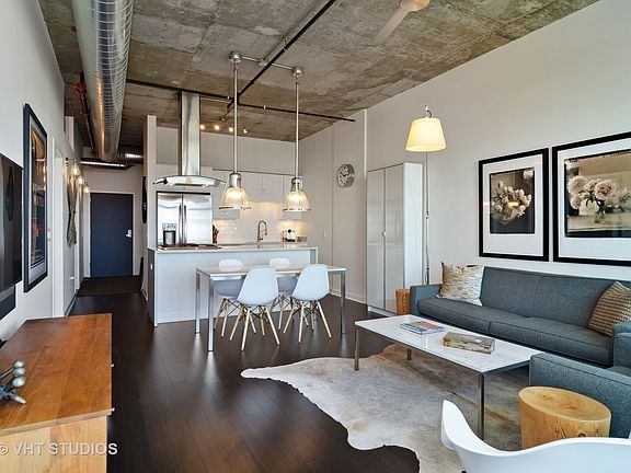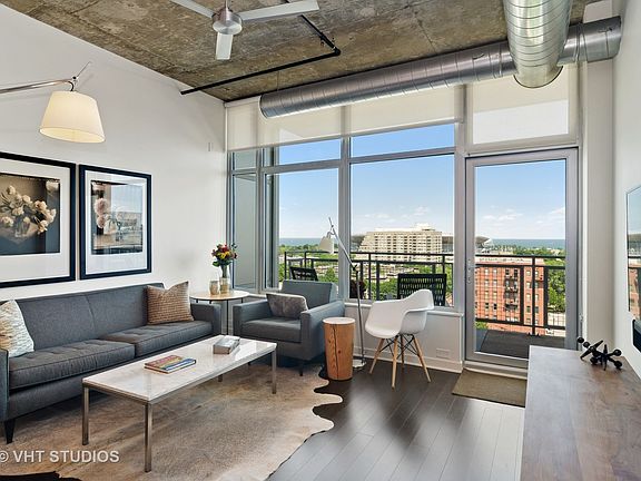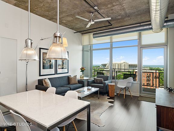Welcome to the Guild in the heart of South Loop! This stunning loft boasts incredible panoramic views of the skyline, Lake Michigan, and Soldier Field! This gorgeous home is flooded with natural light, has been lightly lived in and leaves no detail untouched. These owners put all new flooring, glass shower doors, professionally organized closets, designer lighting, custom window treatments, higher end washer/dryer and both bedrooms completely enclosed. Fabulous chef's kitchen with quartz countertops, waterfall island, subway tile backsplash, and stainless steel appliances. Large living room with plenty of space for dining Building includes 24hr door staff, 2000 sqft fitness center, bike room and an outdoor terrace and additional storage unit. All within steps of South Loop Elementary, great restaurants, Museum campus, Grant Park, Soldier Field, Lakefront, Roosevelt CTA and Fred Anderson Dog Park. All this plus a Deeded TANDEM Garage Parking space + $35K.