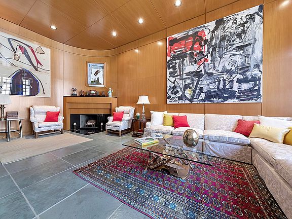 Wood burning fireplaceCustom wood paneled closetsMarble bathElevated dining roomGreen inlaid marble bathTop-tier appliances