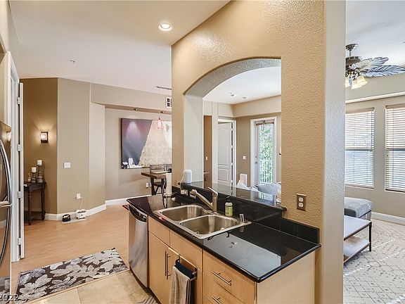 Looking for luxury Condo living? Welcome to the Manhattan Condos! This guard-gated community offers a long list of amenities such as a beautiful Clubhouse, Community Pools/Spas, a BBQ area, a Fitness Center, a Pet/Playground area, a Firepit, and Greenbelt spaces. This 2-bedroom, 2-bathroom unit has an open-concept layout throughout the kitchen, living, and dining areas. The large primary bedroom features dual closets and an ensuite bathroom with double vanities and a separate tub/shower. The secondary bedroom/bathroom is separate from the primary, offering your guests their own space. This unit is perfect for entertaining and is full of beautiful natural light. The balcony off of the living room offers views of the grassy common area and your own space for relaxing outside. This unit also comes with a dedicated underground parking space. Don’t miss this opportunity to live in this beautifully-maintained Condo in a desirable community that is located on the World-Famous Las Vegas Strip.