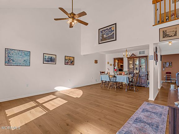 Desirable Parkside at Howell. Welcome to this beautifully maintained 4 Bedroom home featuring a full basement and soaring cathedral ceilings in both living room and primary suite. The first floor boasts engineered hardwood flooring throughout. Inviting Family room with recessed lighting. Enjoy peace of mind with numerous upgrades including Northwest garage doors, Provia front door, Timberline 50 yr. roof, New hot water heater, 2022 Pella windows throughout, new engineered hardwood flooring. A stone throw to the park. Minutes from the beach, shopping and local amenities. This home combines style, comfort and convenience in one perfect package.