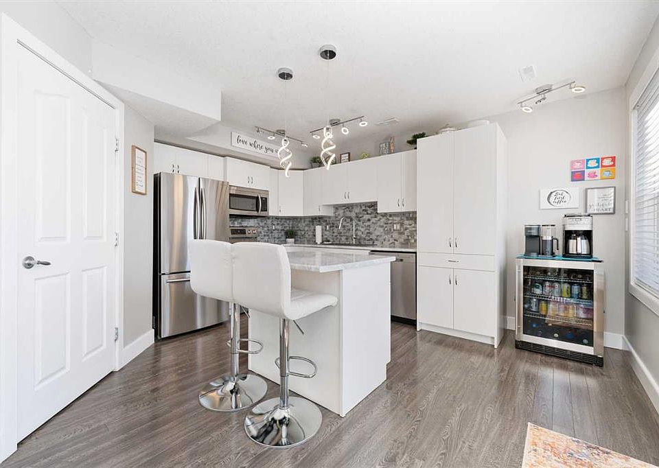 This one is a standout. Fully updated and meticulously cared for, this home features new flooring throughout, fresh carpet upstairs, and an updated kitchen that opens into a spacious main living area. The open-concept layout gives you great flow for entertaining, with just enough separation so you're not staring at the dishes while you unwind. Upstairs, you’ll find two primary bedrooms, each with their own ensuite,. The main bedroom is HUGE and comes complete with a Juliet balcony for your morning coffee or evening breeze. Step outside to your beautiful, newly resurfaced west-facing deck, perfect for soaking up the afternoon sun or hosting friends. You’ve also got an attached single garage, easy access to schools, shopping, and restaurants, and a condo complex that shows true pride of ownership throughout. This home shows 10 out of 10! A total gem with incredible value.