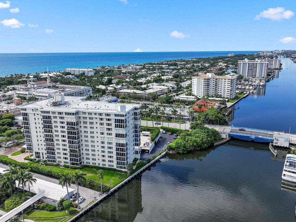 Gracefully poised along the Intracoastal Waterway and just steps from Delray Beach's famed Atlantic Avenue and the Atlantic Ocean, Barr Terrace stands as a masterfully re-imagined, full-service, fully-amenitized and vibrant community which just completed a full building and pool deck renovation. Residents enjoy sweeping water views while enjoying the unrivaled convenience of being moments from the Avenue's renowned collection of fine dining, boutique shopping, and vibrant cultural activities. Unit 3C is ideally positioned on the Northwest side of the building offering exquisite views from every room including amazing sunrises and sunsets, and boating activity on the intracoastal waterway. In addition, this residence provides enhanced tranquility as it is tucked away from the liveliness of Atlantic Avenue. The 3C floor plan is ideal given its split bedroom design along with a rare powder room for guests and an in-unit washer and dryer. The two over-sized bedrooms have their own ensuite bathroom with sizeable walk-in closets with shelving systems, a rarity for most condominium buildings. Newer impact sliders and windows adorn the unit, providing enchanting views of the intracoastal from every living space. The living room and dining area flow directly into the spacious kitchen with pantry, which can be re-imagined to further integrate the dining area, kitchen and balcony area into one cohesive space. A covered, ideally located parking space in the secured garage along with a large storage locker convey with the sale of this unit.
