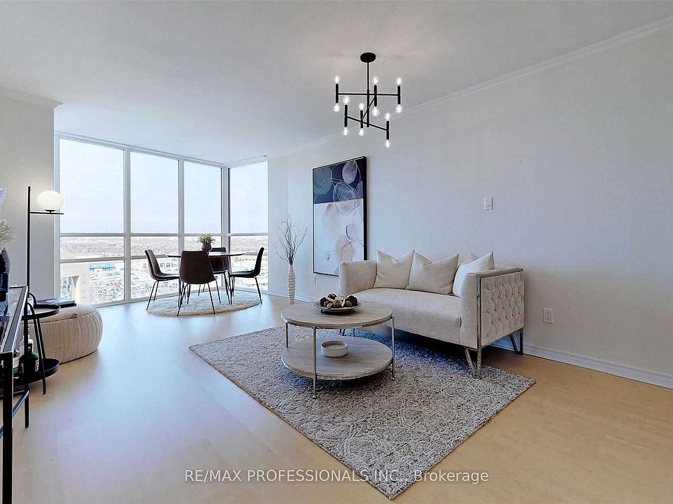 Discover elevated living in this beautifully renovated 690 sq. ft. condo, perfectly positioned in one of Mississauga's most desirable communities. Featuring a stylish open-concept layout, this sun-filled suite is designed for both comfort and sophistication, with floor-to-ceiling windows framing breathtaking, unobstructed views of the city skyline. The custom contemporary kitchen is a chefs dream, equipped with sleek granite countertops, modern stainless steel appliances, pot lights, upgraded light fixture, and a large passthrough window that keeps the space bright and connected to the living area. Freshly painted in timeless neutrals with smooth ceilings (no popcorn!), this home is move-in ready and effortlessly elegant. The spacious bedroom offers a double-door closet and stunning floor-to-ceiling windows, providing peaceful views and abundant natural light. The spa-like bathroom has been fully upgraded with elegant porcelain tiles, a modern vanity, hand-selected designer wallpaper, and gold hardware for a refined touch. More than just a condo, this residence offers a lifestyle, enjoy your morning coffee or evening wine while soaking in panoramic views from your living room. Residents enjoy premium amenities including a 24-hour concierge, indoor pool, fully-equipped gym, squash court, landscaped gardens, and more. Walk to shops, dining, parks, and plazas, with easy access to major highways, transit routes, and the upcoming Hurontario LRT just minutes away. This is your opportunity to own a truly special space in a prime location.