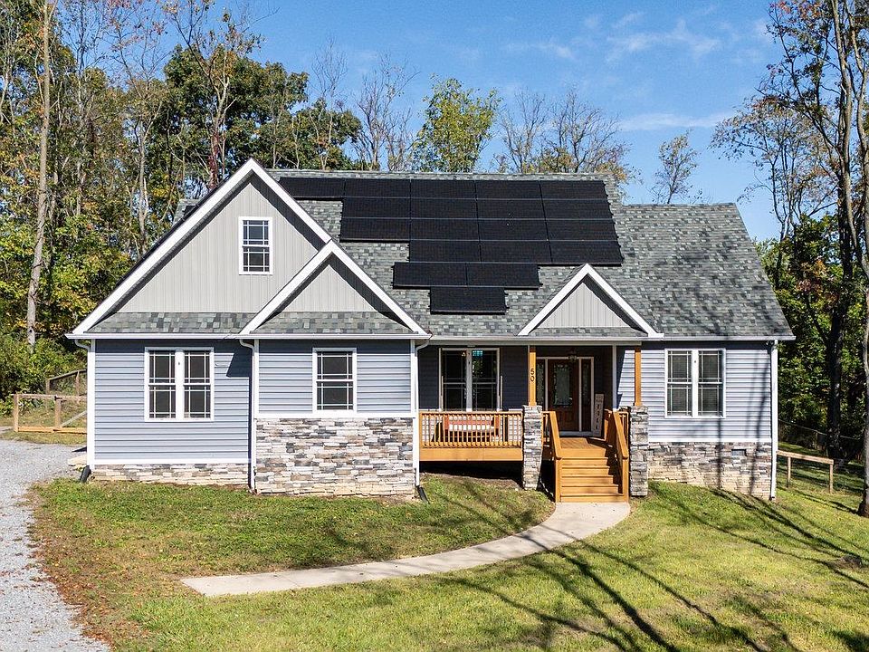Modern Single-Level Living in the County! Enjoy the convenience of single-level living with this modern and spacious home just minutes from downtown Staunton and the Woodrow Wilson Parkway. Nestled on a private partially wooded lot in the highly sought-after Valley Manor neighborhood, this home offers 3 bedrooms, including a primary suite with 12-foot vaulted ceiling. The spacious great room leads to an ample deck, perfect for entertaining! The kitchen features stainless steel appliances, quartzite countertops, and an oversized island, while the living room has a cozy gas log fireplace surrounded by custom cabinetry. The unfinished room above the garage is ready for your personal touch as a home office or fourth ensuite bedroom, already plumbed for a third full bath! Solar panels offer year-round energy savings. You’ll fall in love with the custom porch swing and fully fenced back yard. Don’t wait to schedule your showing!