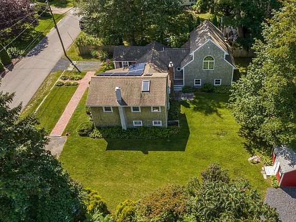 "Charming, cozy, comfy, delightful and whimsical". Take your pick! Just don't miss seeing this sun-filled home on a double lot that has been lovingly expanded and updated over the years. The front entry door welcomes you into the sunroom with slate flooring, cathedral ceiling and skylight. French Doors will bring you to an Open floor plan featuring: the Kitchen with birch cabinetry, granite counter tops, GE Profile SS refrigerator 2021, GE Dishwasher 2020. The adjacent Dining Room has a cathedral beamed ceiling, chandelier and a gas fireplace. A few steps will bring you up to the expansive Living room with custom stenciled floor, cathedral ceiling, skylights, one wall is trimmed with original pine paneling from this "cottage" built in the 1950's. There are 3 exceptional Bedrooms with plenty of closet space. Private landscaped yard with brick walkways. A short walk to Wampatuck Elementary school and Egypt Beach. Minutes to the Harbor and the commuter rail.