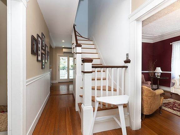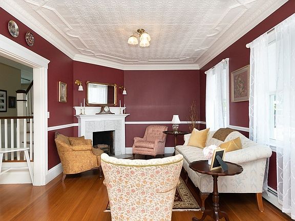 Welcome to 50 Floyd Street here in the Winthrop Highlands. This oversized cottage-style home commands attention from the street, with a gorgeous front porch, large front yard, and picture windows. The first floor features two living rooms, one formal with a beautiful fireplace, wall sconces, and reading nook, and refurbished tin ceiling, while the informal is perfect for a comfy sectional and media space. The kitchen is newly renovated with a spacious island, stainless steel appliances, and a full eat-in dining area with a built-in dry bar. Upstairs, the sitting area offer breathtaking views of the Atlantic right up to Nahant through enormous windows. The primary bedroom includes a full dressing/laundry suite perfectly convertible to a primary bathroom if desired. The common bathroom is renovated with rustic stylings. Down in the basement is another full bathroom with a large, fully finished family space / kitchenette ideally used for a sports center, teen/play room, or media space.
