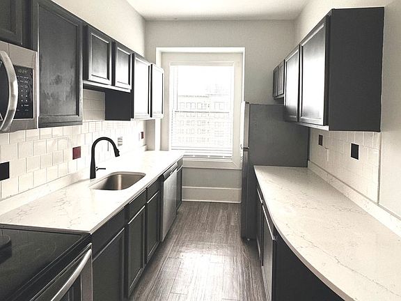 stainless appliances, granite countertops, stove, microwave, and dishwasher. Apartment finished with new flooring throughout.