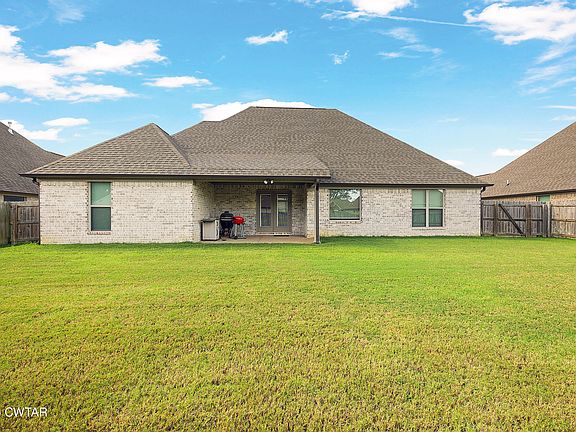 Welcome to this beautifully maintained 4 bedroom, 2 bath home located in Wyndstone Subdivision. From the moment you walk in, you will notice the open, split floor plan that makes this home perfect for both everyday living and entertaining. The kitchen has quartz countertops, an island and soft close cabinets. Relax in the primary suite with dual vanities, oversized tub, and separate shower. Both bathrooms include dual vanities for convenience. Washer, Dryer and Refrigerator do convey. Enjoy outdoor living with a covered back patio and fenced yard, perfect for entertaining or pets. Additional highlights include ceramic tile in main areas, carpeted bedrooms, security system, and Roof/HVAC only 5 yrs old and a current termite contract with Southeastern Termite and Pest Control.