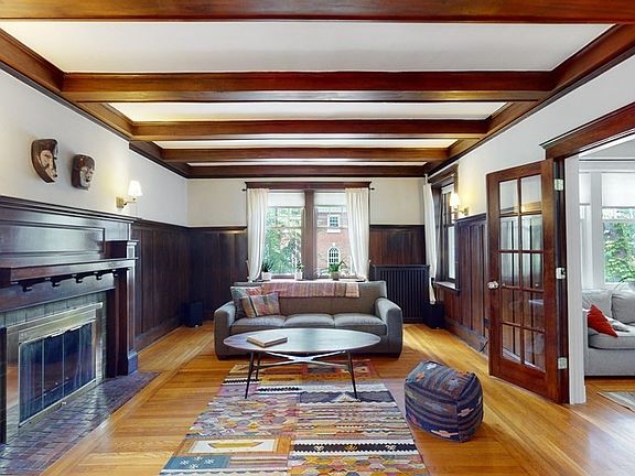 - Features: Beamed Ceilings, Flooring - Hardwood, Window(s) - Bay/Bow/Box, Wainscoting