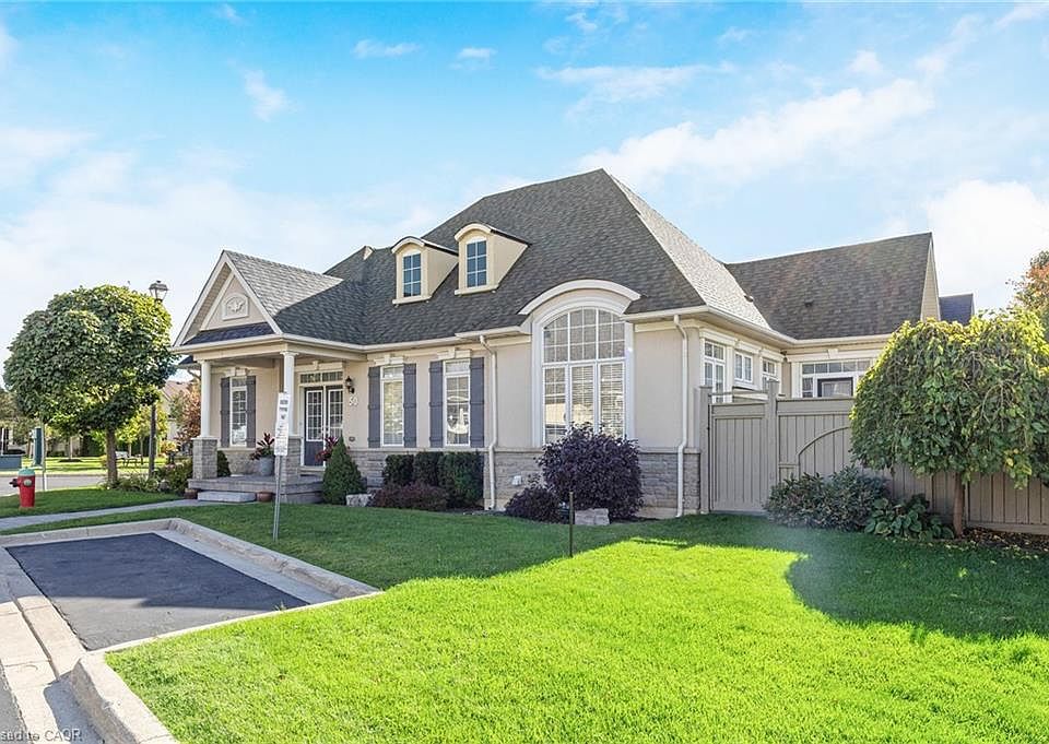 This meticulously maintained end-unit in highly sought after Barber Glen offers 2,911 of total finished sq. ft., has a private backyard and a double car garage! The main floor has a large dining room with vaulted ceilings and hardwoods floors, a bright living room with gas fireplace and hardwood floors, an upgraded kitchen with extended upper cabinetry, quartz countertops, a huge island, custom backsplash, stainless steel appliances, and an eat-in area with direct access to the backyard. There is a primary suite with coffered ceilings, a walk-in closet & 4-pc ensuite with a soaker tub. The second bedroom also offers a walk-in closet & 4-pc ensuite. There is an additional 2-pc powder room and main floor laundry with access to the 2-car garage. The fully finished basement offers a huge rec room with a wet bar and built-in cabinetry, pot lights, a gas fireplace, a 3rd bedroom, a 3-pc bathroom, a cold cellar and tons of storage space! Steps from shopping, restaurants, parks and schools! Roof 2020, AC 2022, Driveway 2023, Landscaping 2018, HWT 2020