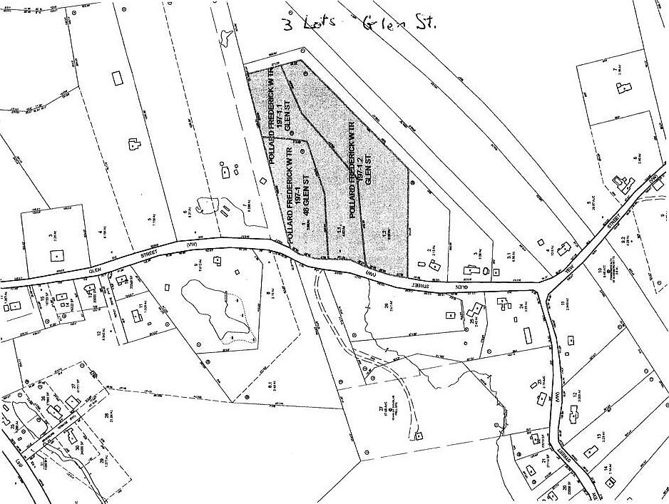 3 beautiful contiguous lots in country yet near town. Perk and deep holes complete. Total in-ground inexpensive leach fields. Town water is at street. Soils are sand and gravel. There is a bridge across a brook as you enter the property. Some wetlands exist at the beginning of the property and all conservation conditions have been satisfied. The lots where any activity will occur has no wetlands. Gently rolling land. Private setting for any building. Each lot has more than the town required acreage.5.3 acres, 4.02 acres and 2.86 acres. A common drive has been completed. Very picturesque setting for each new home approx. 600 feet back from Glen St.