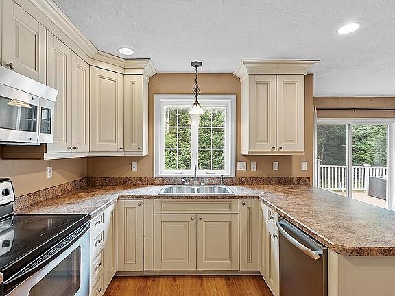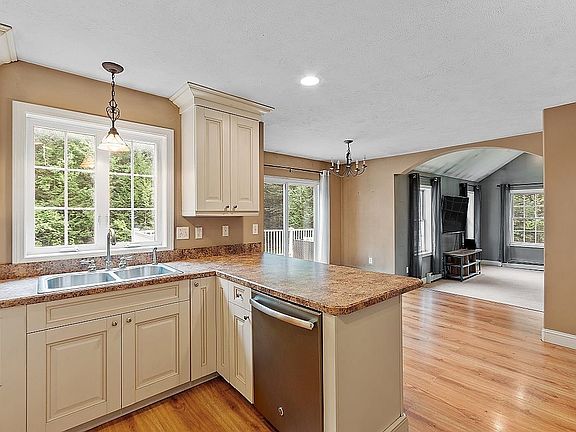 Beautiful and private 3 acre setting with this fabulous 4 bedrooms, 2.5 bath Colonial and an attached two car garage. The welcoming open foyer leads into a sunken living room featuring cathedral ceilings and a stone fireplace! An open concept and fully applianced Kitchen and dining area is super functional. Tall kitchen cabinets, stainless steel appliances and a slider to an expansive composite deck overlooking the large yard. The first floor primary suite has a walk in closet & cathedral ceilings. There is also a luxurious full bathroom with double vanity sinks, a jetted tub and a tiled walk in shower creating a “spa like” atmosphere. In addition, there is a convenient half bath and 1st floor laundry. Upstairs are three bedrooms, a full bath and an office. Need more space, the expansive walk out basement has extra tall ceilings for potential future living area. The basement is set up for a wood stove. As an added bonus, babbling sounds of the Souhegan River is peaceful & a very short walk. So much to offer with this property. Quick closing available.