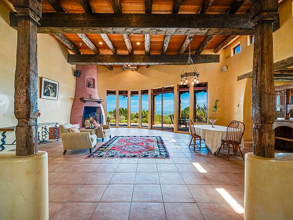The main residence showcases authentic Southwest style, adobe and rastra construction. It features intricate plasterwork, recycled wood vigas, and a heated indoor pool, the rooftop deck offers truly unobstructed views. The solid oak cabin adds rustic charm, originally owned by the Hoover family, and rebuilt on-site.