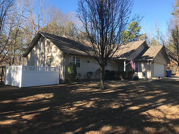 For viewing call (870) 476-3458 or (870) 240-3210. Have you ever wanted to live in the country but enjoy city amenities? This cozy home is nestled on 5 acres just outside of town. It boasts an open floor plan design with the luxury of city cable, high speed fiber optic internet, and great cell phone reception. The master bedroom (13x12) has french doors that opens up to the back porch. The master bath has a large walk-in shower, walk-in closet & whirlpool tub. The great room has tray ceilings, recessed lighting & gas log fireplace. The 2nd bedroom (10x10) has a pond view window. The 3rd bedroom (10x10) is currently utilized as an office. The covered porch over looks a stocked pond with a dock for fishing. The oversized garage is a handyman's dream. Property includes additional covered parking as well as another detached garage that is great for storage. FSBO but will pay realtor 2.5%.